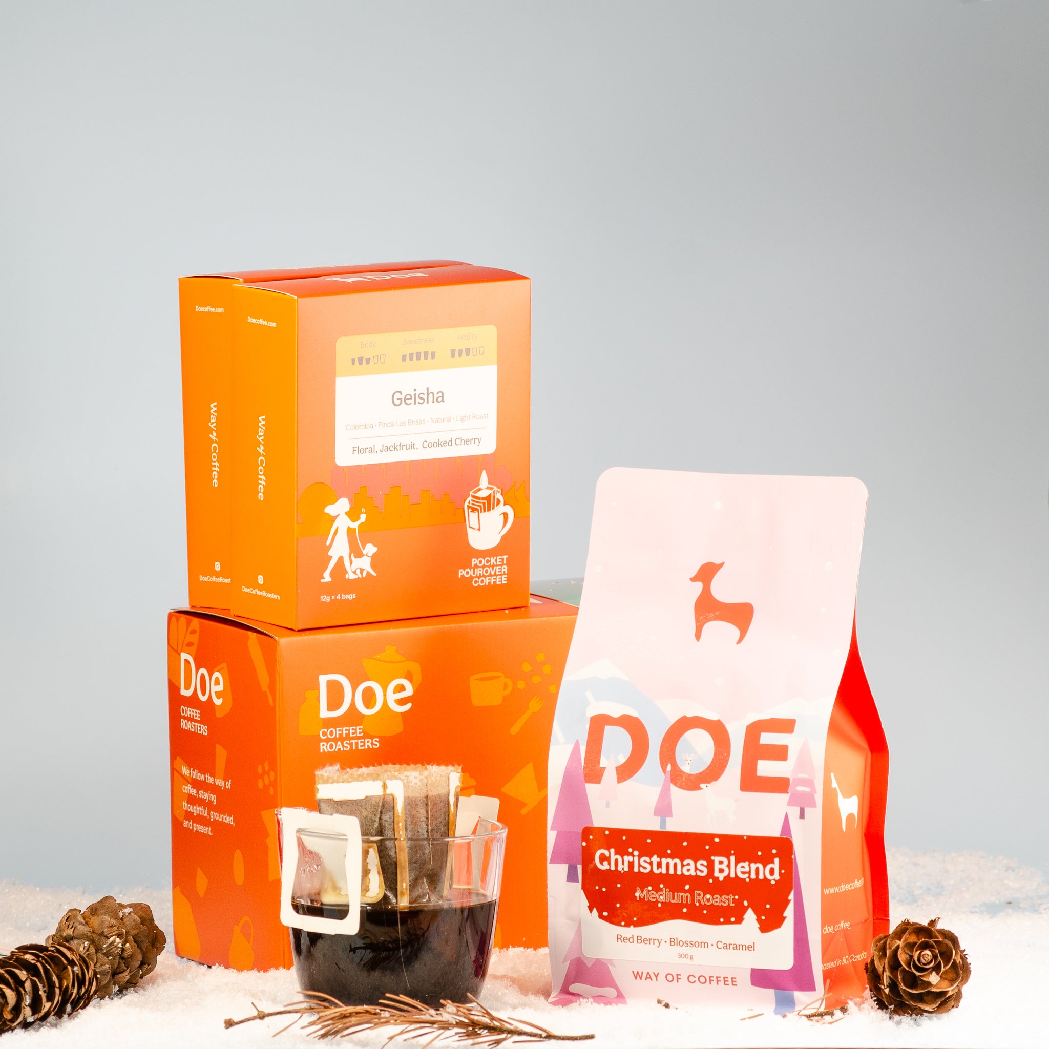 This holiday set brings together our signature Christmas Blend and two premium single-serve brews—Geisha and Perfume—making it the perfect gift for cozy mornings, winter gatherings, or anyone who loves great coffee made simple.